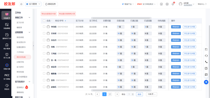 检查发现整体情况良好,大部分学生能够按时、规范地完成任务,指导教师们也认真履行了批阅与指导职责。但同时也发现了个别学生存在周志撰写不够深入、内容流于形式,以及极少数签到记录异常等问题;在教师端,也存在个别批阅反馈不够及时或针对性有待加强的情况。