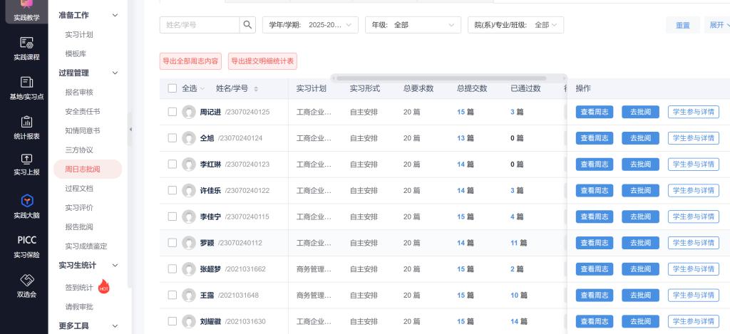在自查工作中,实习管理团队首先对线上实习管理平台数据进行全面梳理。从学生周志提交情况来看,两个专业学生整体提交情况良好。多数学生能够按照要求,每周详细记录实习工作内容。不过,自查中也发现少数学生存在周志提交延迟、内容流于形式等问题,实习指导老师已通过线上留言、电话沟通等方式逐一提醒,并针对周志撰写技巧进行专项指导,帮助学生提升实习记录的规范性和专业性。此外,线上签到作为实时掌握学生实习出勤情况的重要手段,此次自查也重点关注。大部分学生能够按照企业考勤制度和学校实习要求,每日按时完成线上签到,如实反馈实习出勤状态。