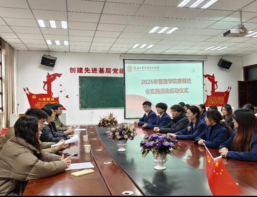 为深入学习贯彻习近平总书记对青年工作的重要指示精神,推动学生在社会实践中淬炼本领、强化服务素养,激励学子成长为有理想、敢担当、甘奉献、善拼搏的新时代杰出青年,管理学院于1月15日在文华楼1-410会议室举行2026年寒假社会实践活动启动仪式。管理学院分团委书记张梦垚,辅导员代表以及各实践团队成员参加了本次活动。