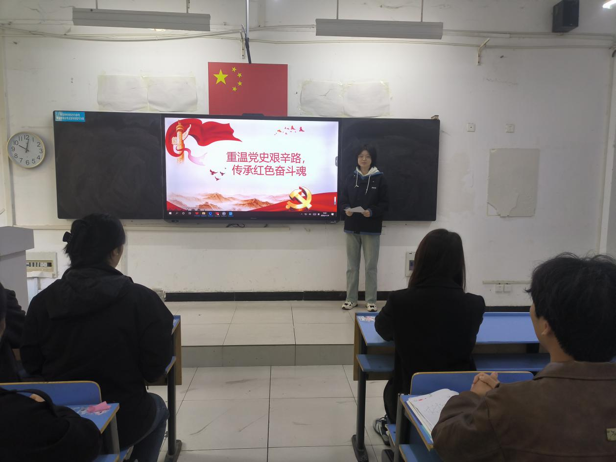 为深入学习党的百年历史,重温党的百年奋斗历程,传承红色基因,汲取奋进精神,在新时代的征程上续写新的辉煌。2025年11月4日管理学院学生第一党支部于文化1—211开展学习“重温党史艰辛路,传承红色奋斗魂”主题教育。