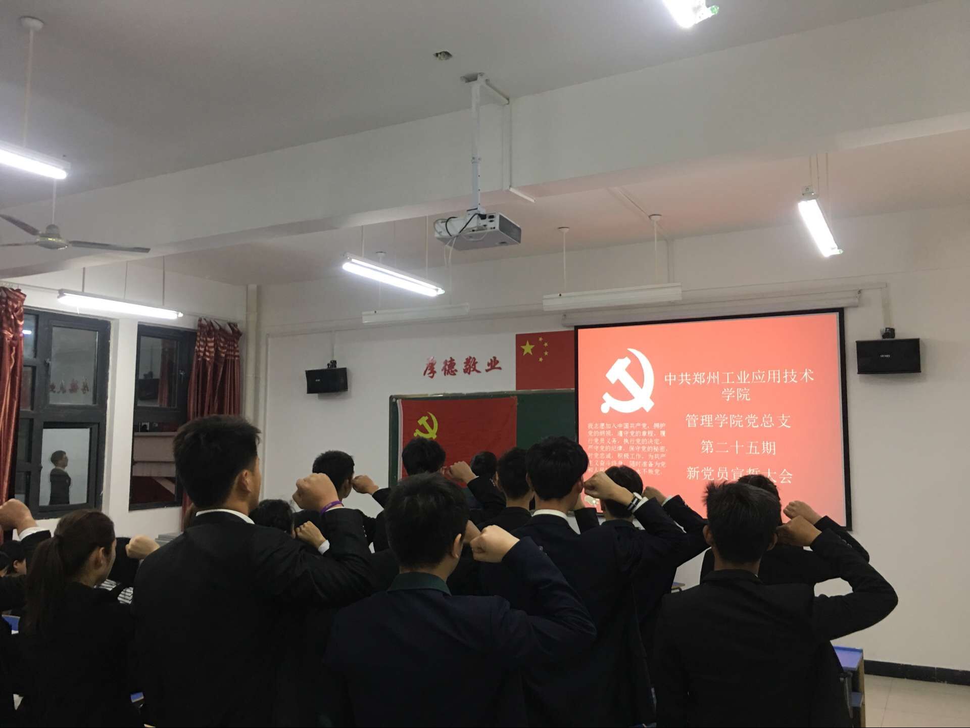 2017年3月15日晚上七点,管理学院党总支在文华楼1—214教室举行第25期新党员宣誓大会活动。参加此次会议的有管理学院党总支组织委员蔡威老师、辅导员李雪茹老师、以及管理学院第25期新党员成员。
