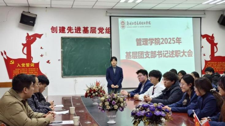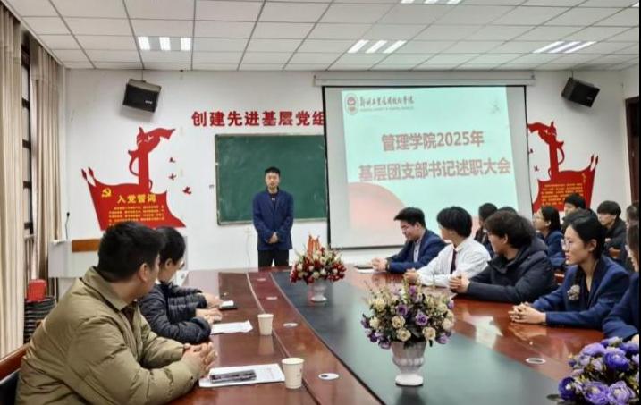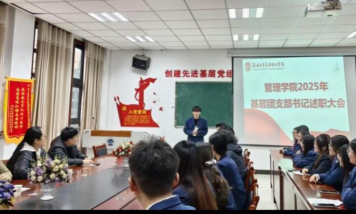 为全面总结2025学年各基层团支部工作成效,搭建团支书经验交流、互学共进的优质平台,持续深化基层团组织建设,提升基层团工作部署落实质效,2026年1月14日16:30管理学院在文华楼1-410会议室顺利召开2025年基层团支部书记述职评议大会。参会人员有管理学院分团委书记张梦垚老师,辅导员代表及各年级团支书。