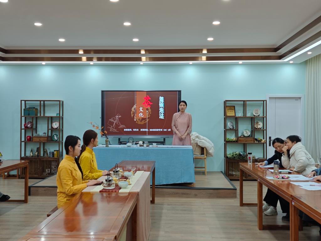 本次大赛学院高度重视,成立评审专家委员会,确保比赛评审的专业性、公正性。比赛严格遵循 “抽签订序、现场展示、评委打分、即时公布” 的流程,设置说课、模拟授课、现场提问三个环节,总时长限定 30 分钟,全面考察参赛教师的教学设计、实践操作、课堂把控及应急应变等综合能力。 比赛现场,各位参赛教师精心准备、各展所长,展现出扎实的专业功底和鲜明的教学特色。物流教研室的李昱彤老师以《仓储配送虚拟仿真实训》参赛,熟练运用虚拟仿真教学手段,还原仓储配送全流程操作,教学组织严谨有序,重点突出安全规范与效率提升;工商教研室的高硕老师以 《创新创业模拟经营练习》 课程参赛,通过清晰的逻辑阐述和生动的模拟演示,将创新创业的核心理念与经营实践相结合,教学设计凸显实用性与创新性;旅游教研室的刘肖杰老师以《茶文化与茶艺》实训课程参赛,讲述了盖碗冲泡技艺,示范标准规范,语言生动形象,将传统文化内涵与实训教学深度融合,课堂氛围雅致而富有感染力。
